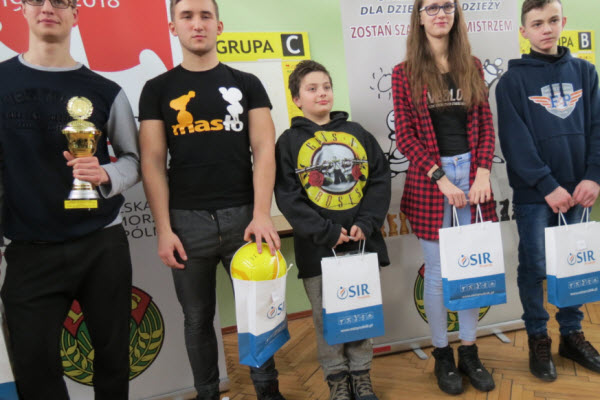 Nagrodzeni w gr. A. Pierwszy z lewej Kuba Dereń, obok Kuba Nowacki.
