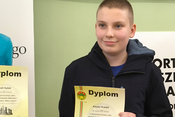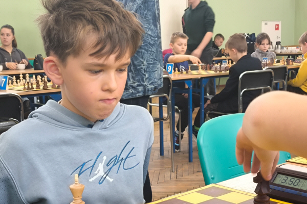 Najbardziej interesują mnie występy debiutantów. Patrzę, jak się zachowują, jak znoszą porażki. Na początku jest ciężko, ale to normalne. Ci, którzy przetrwali, sięgają po laury. Np. Julia Żelazny - zdobyła 4 p., które zapewniły jej miano najlepszej dziewczyny. Kacper Kraska w ostatniej partii miał figurę więcej i rywala na łopatkach, co dawało zwycięstwo w turnieju, ale jedna niedokładność pogrzebała szanse. Skończyło się remisem i trzecim miejscem. Miejscem, które i tak jest świetne, bo nasz zawodnik debiutował w najstarszej grupie (D). Jeszcze bardziej zadziwił Kacper Nowakowski, który z marszu, jakby bez wysiłku i na wesoło wygrał swoją grupę (C). Chyba jeszcze doń nie dotarło, co zrobił, jaki to sukces. Oby nie uwierzył, że teraz to już tak będzie zawsze, choć nie mam nic przeciwko.